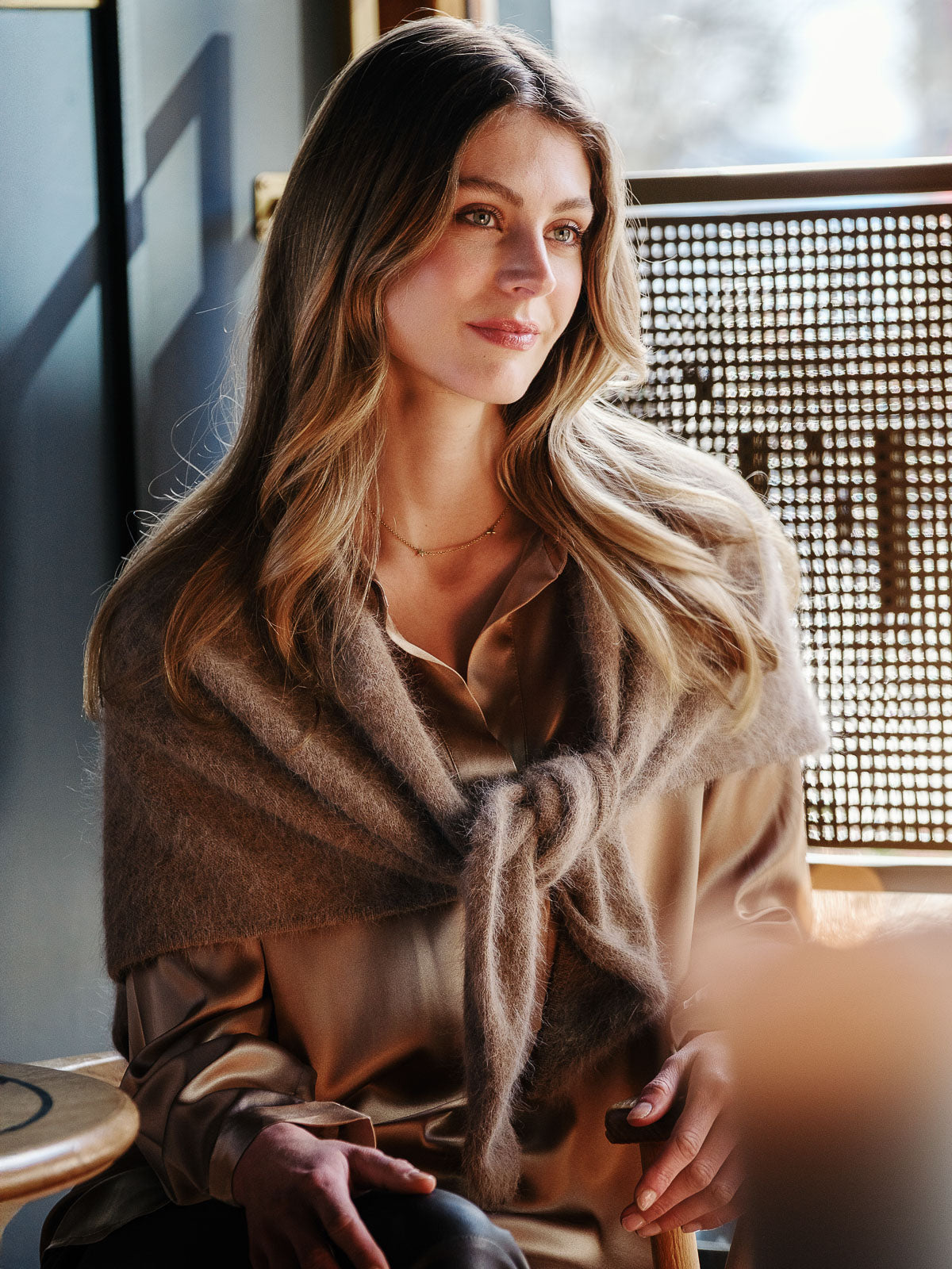Silke blusen fra norske Ane Mone er så etterpurt. Denne fantastiske nye Praline fargen er det perfekte fargen til høstens brune, burgunder og marineblå. Blusen har en knapp øverst som du kan velge å ha åpen eller igjen. Blusen har krage og lansjetter på ermene med en knapp. Den er buet nederst som gjør den nett nok til å ha på utsiden og inni buksen eller skjørtet. Her investerer du en i en fantastisk bluse for mange år.
