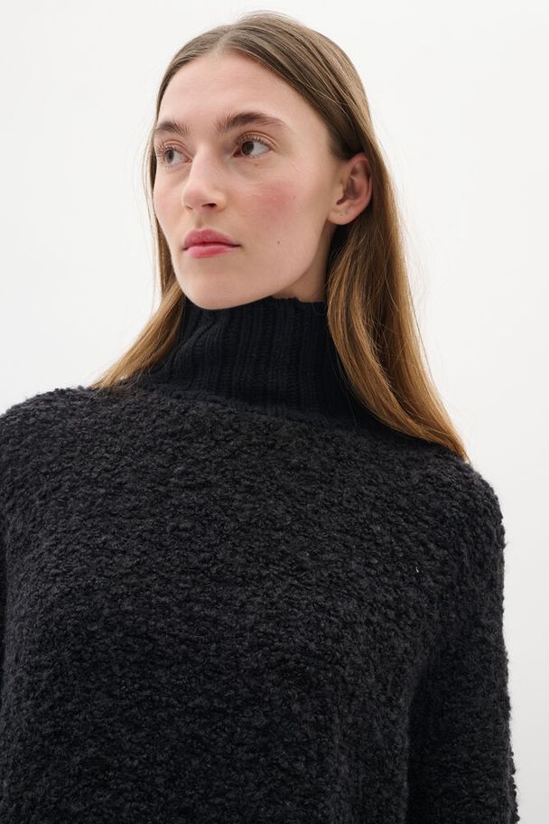 Tykk deilig boucle høyhalset genser. Ribb strikket på ermer, hals og nederst kant. Splitt nederst kanten. Litt oversized så behold vanlig størrelse.