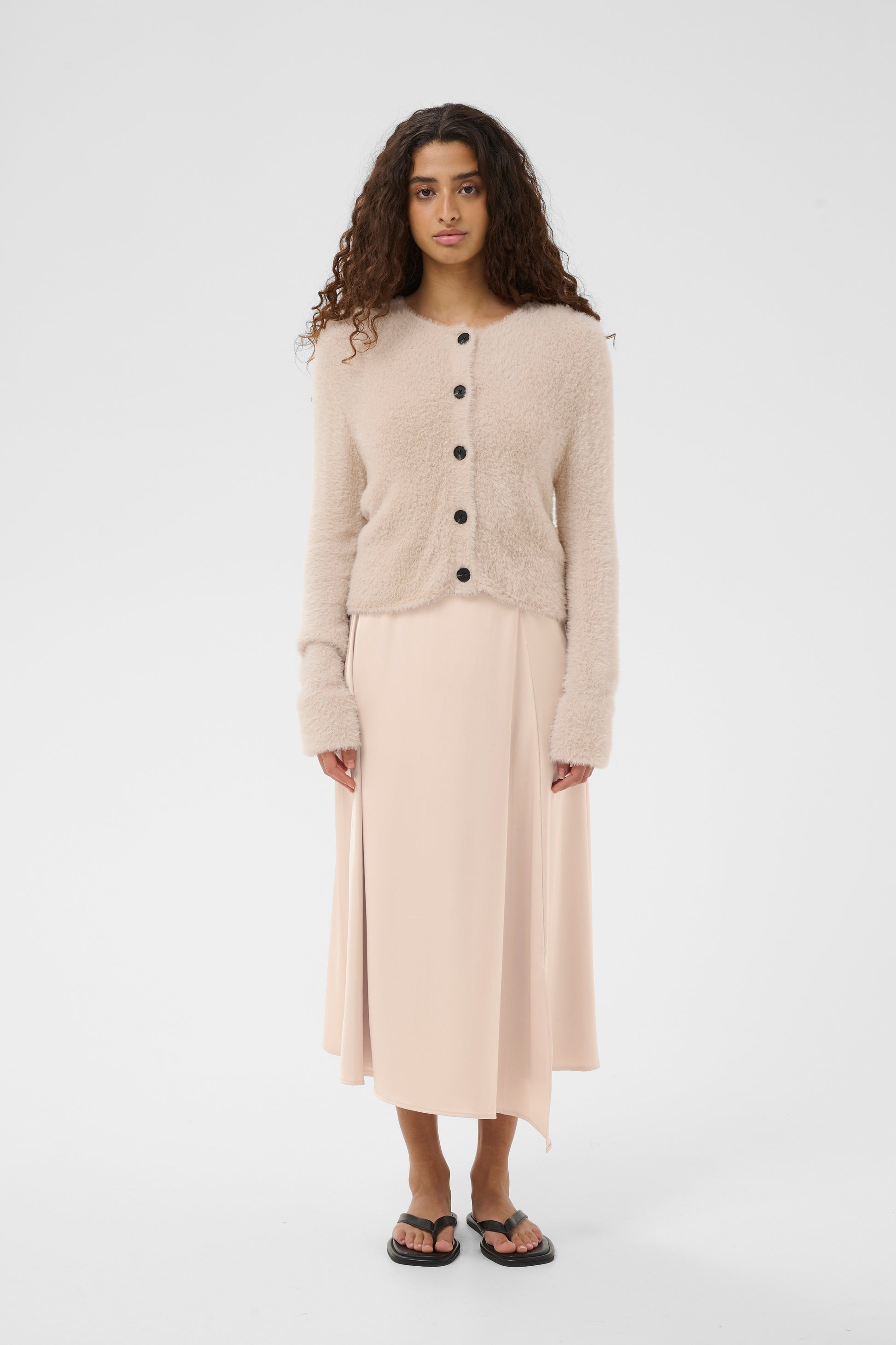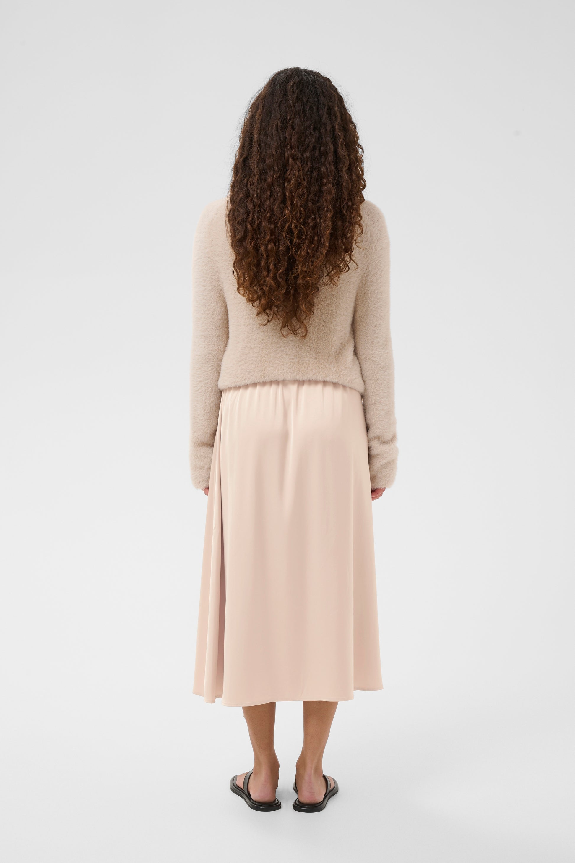 Lang glatt midi skjørt a fasong. Splitt foran. Strikk i livet.