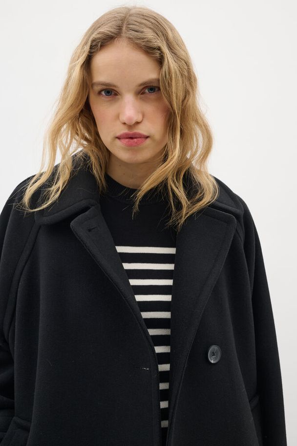 Favoritten minona jakka er her i ull. Denne superfine korte jakka er i sort, har beslag over og knapper på strå for en litt edgy look. Denne er klassisk med en tvist som gjør den unik. Lommer i siden. Laget av Meida sertifisert ull som tilsier at den er mye varmere, puster mer og er litt vannavstøtende.