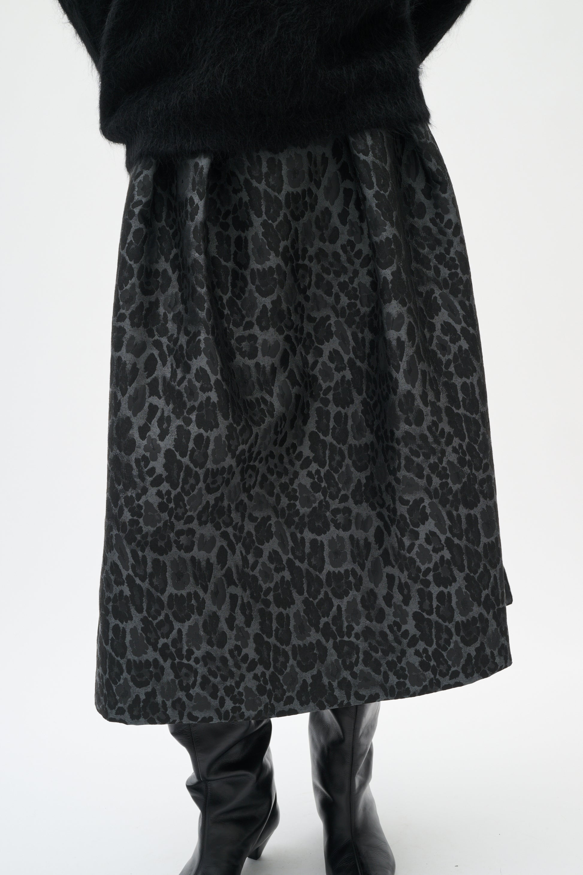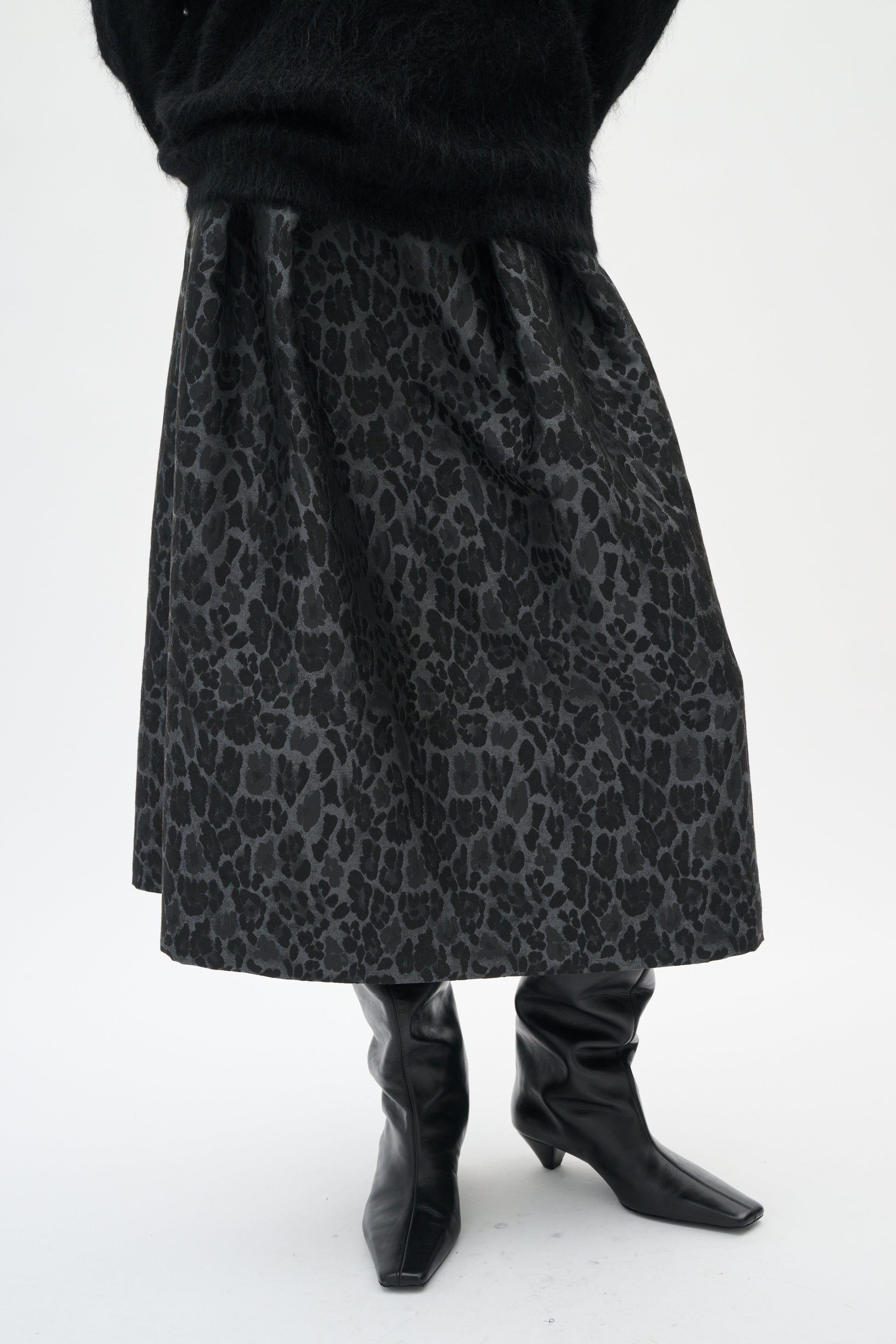 Nydelig skjørt med lommer i siden. Leoprint i sort og grå. Glidelås bak. Midi lengde.