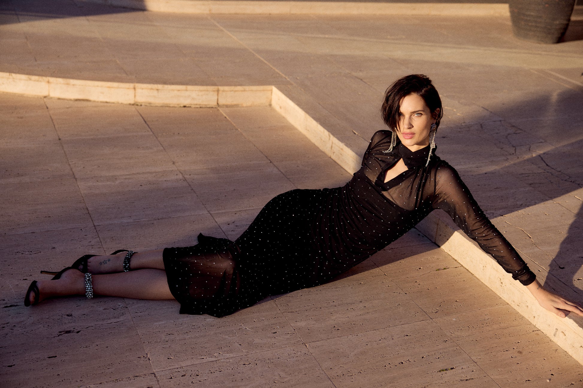 Den perfekte jul og vinterkjolen fra norske Katrin Uri er her. Denne fasongen er helt rå på. Kjolen er i mech med stunds hele veien. Deilig stretch og en fantastisk hals med vridning øverst. Innekjole på midten Denne er den ulitmate sorte kjolen med det lille ekstra.