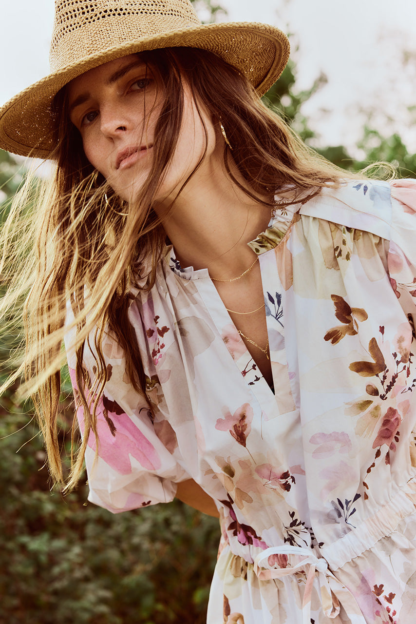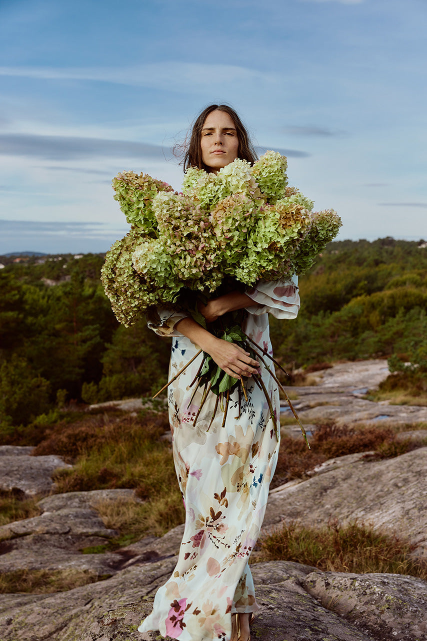 Den fineste og deiligste kjolen fra norske Katrin Uri. Denne er helt nydelig i printet med masse vår farger på creme bunn. God erm som er deobbel foret. V-hals og litt rynker på skuldre. Kjolen har belte i livet og såklart lommer i sidene. Dette er en midi kjole.
