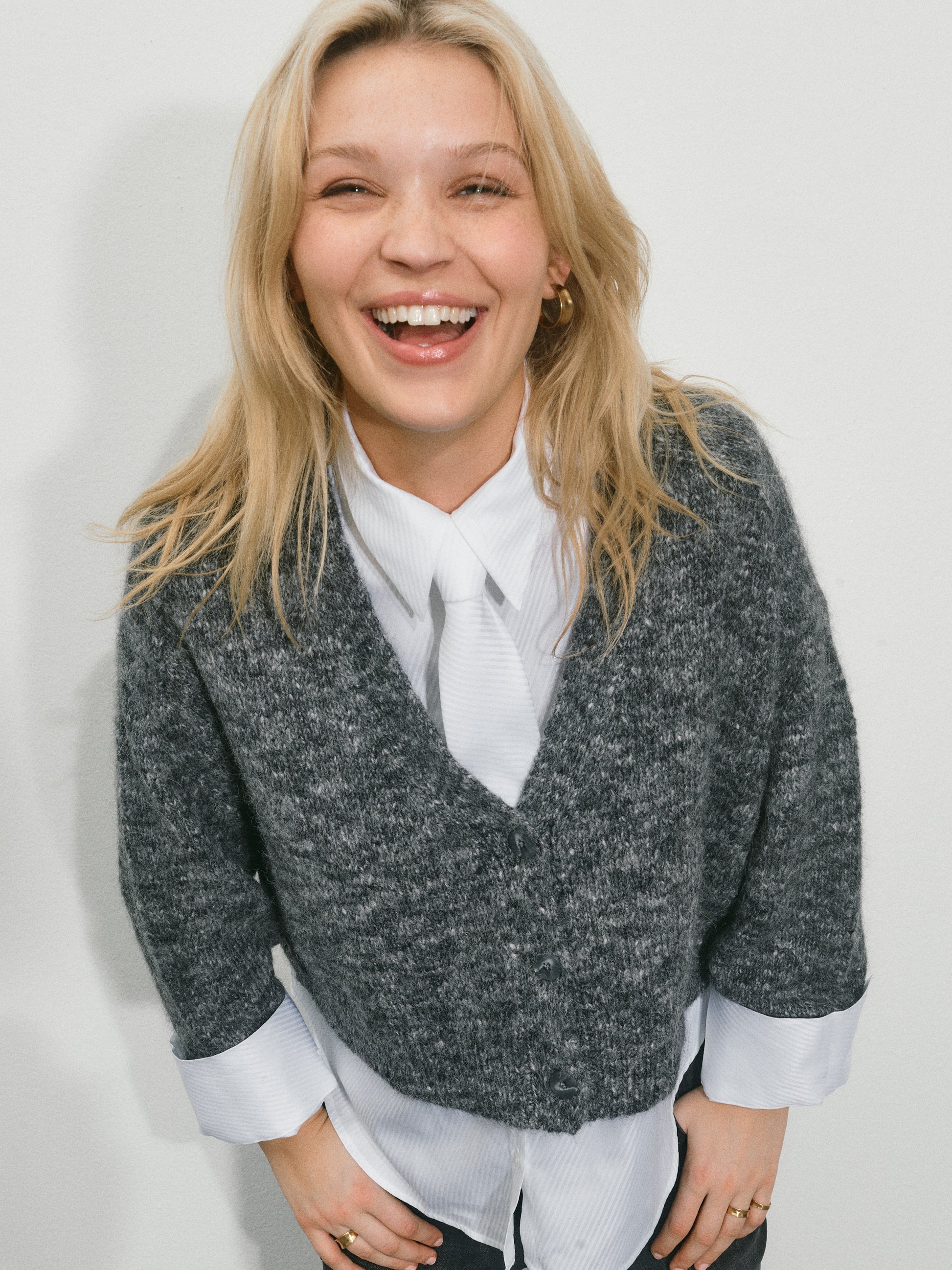 Den råeste hvite skjorta denne sesongen, med striper i hvitt i stoffet som struktur. Denne er så fin og tung i stoffet. Den kommer med slips som kan tas av.