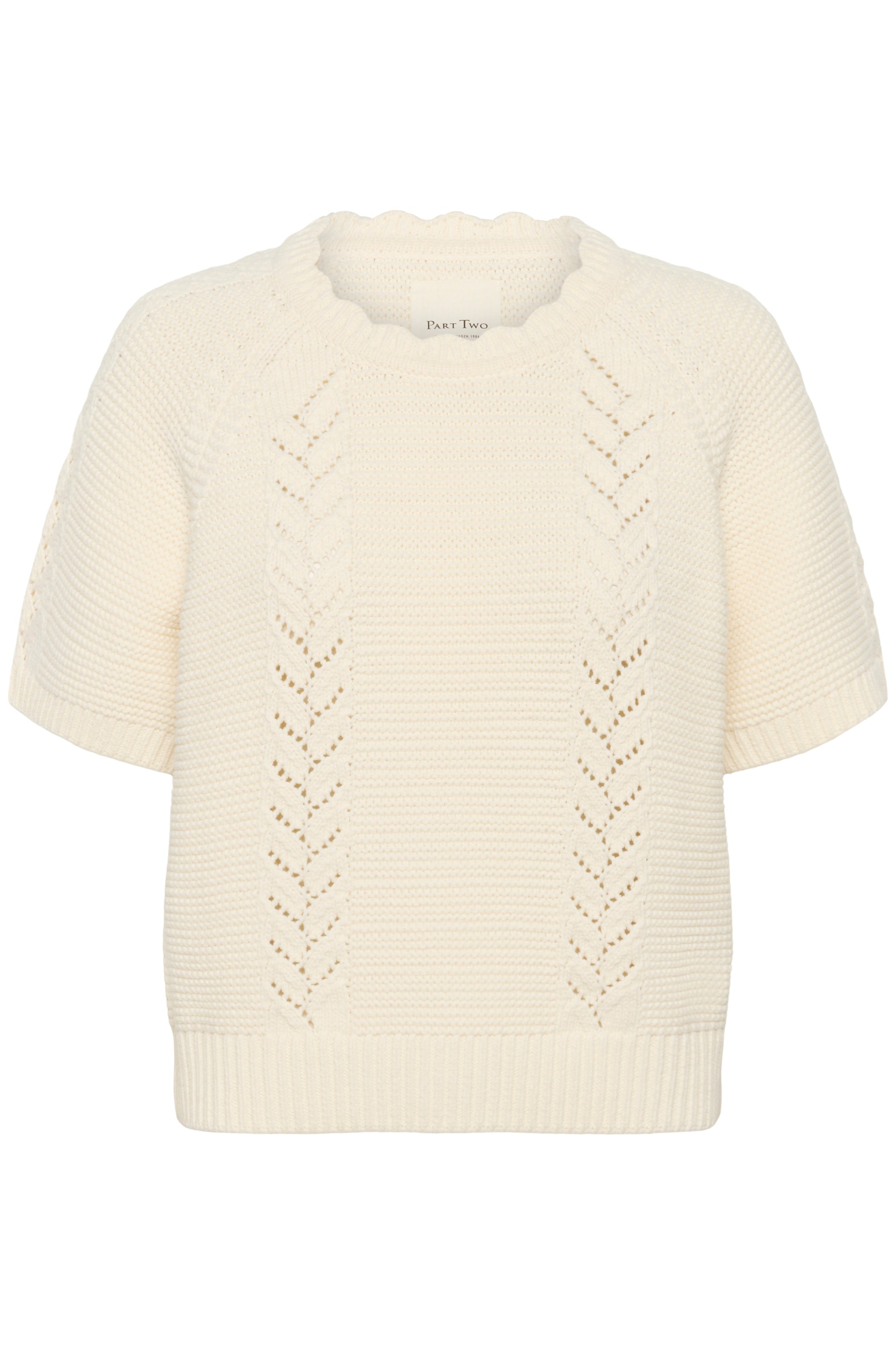 Deilig strikket kortermet genser fra danske Part Two. Denne er med rund hals og kantet på innsiden. Ermen er god og modellen er rett.