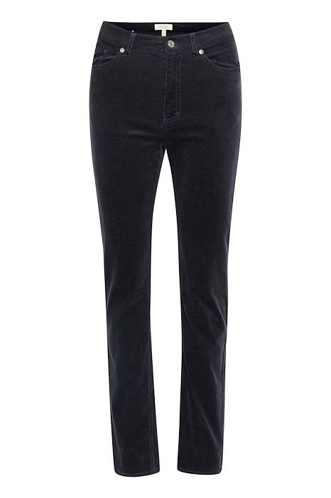 Flotte slim fit bukser i deilig kord med høy midje. 5 lommer og beltestropper.