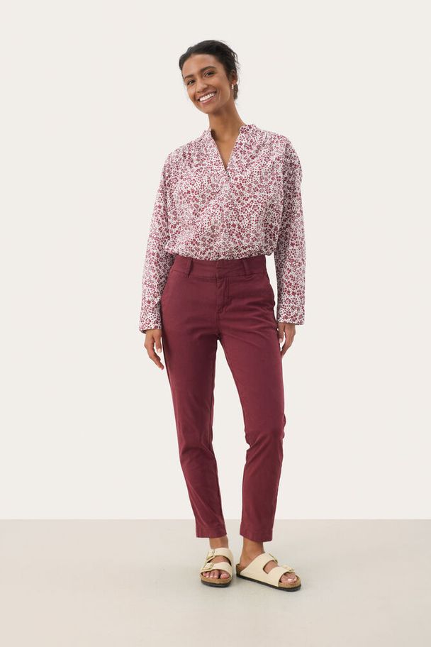 Den perfekte chinos fra Part Two. Denne er avslappet i passform med stikklommer og beltehemper. Buksen er vanlig i størrelsen og gir seg noe. Buksen er ankellengde.