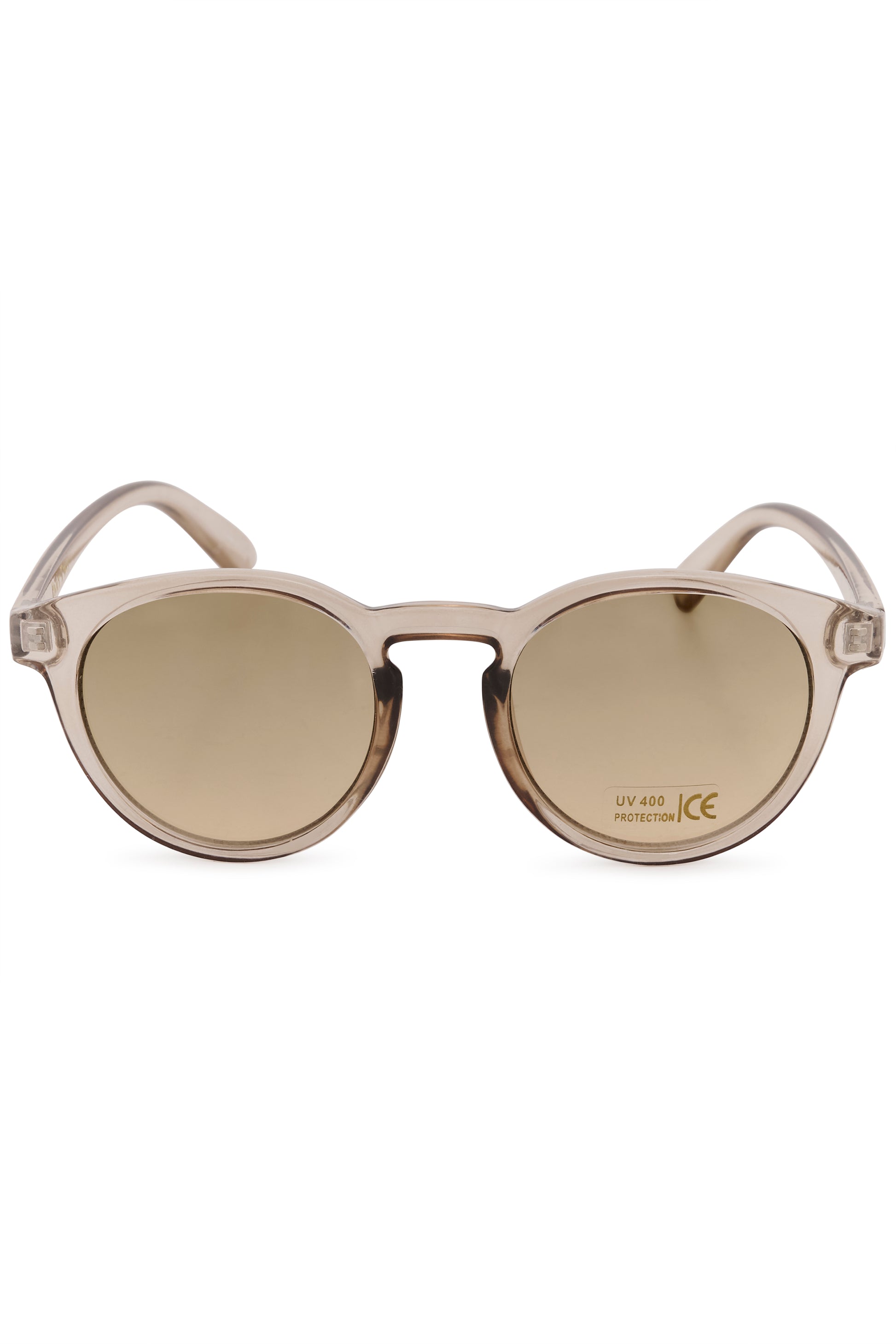 Solbriller i en klar gjennomsiktig farge på rammen. God pris og kommer med skinnetui.