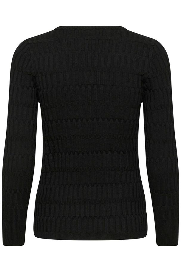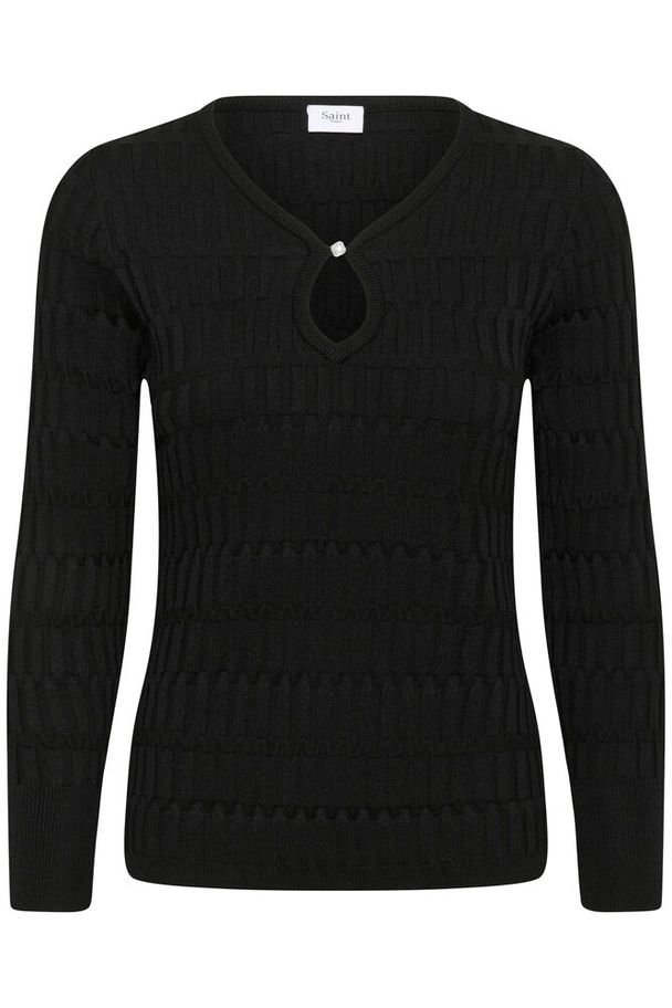 Supersøt enkel sort genser med v-hals med en søt liten perle på. Struktur i hele genseren og den har ribb mpå ermer og nederst på kant.