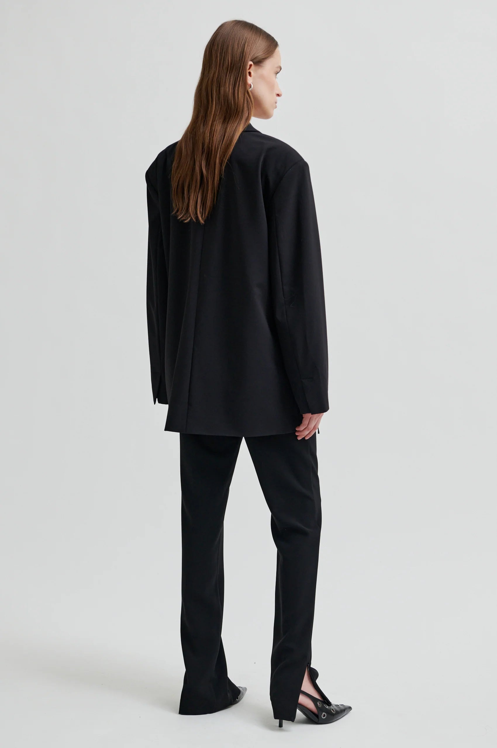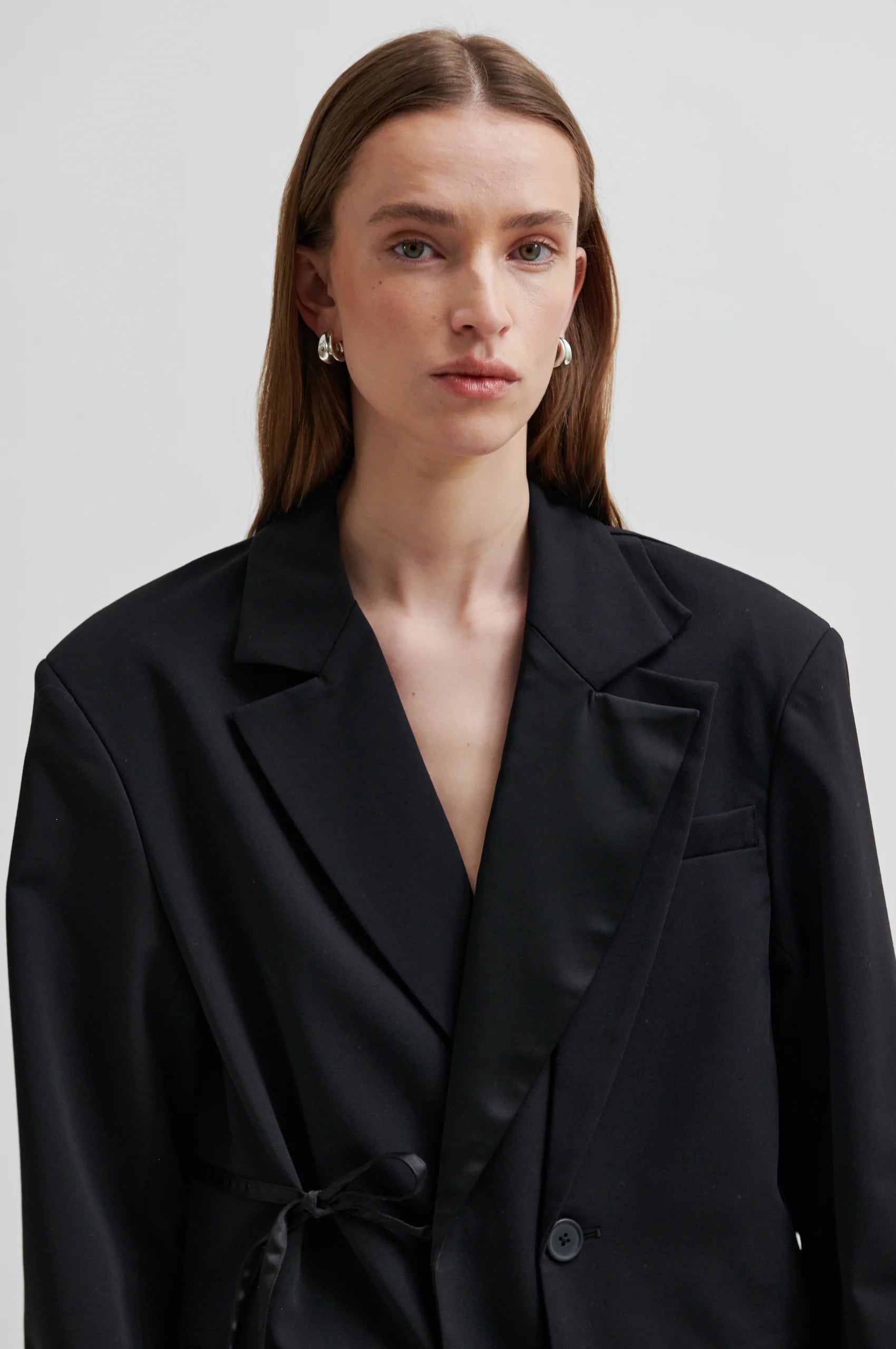 Den råeste sorte blazeren med dobbelt slag på en side, en knyting og den perfekte lengden. Denne alene er rå til jeans eller til buksa Fique. Denne er i sort og kan brukes hele året til alt.