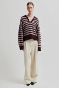 Nydelig stripete strikket genser fra Second Female. Denne er så god og fin på. Polo krage med v-hals. Litt stor så gå en ned.